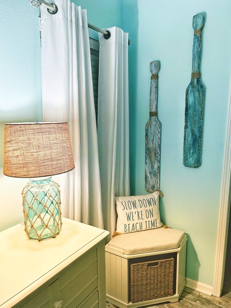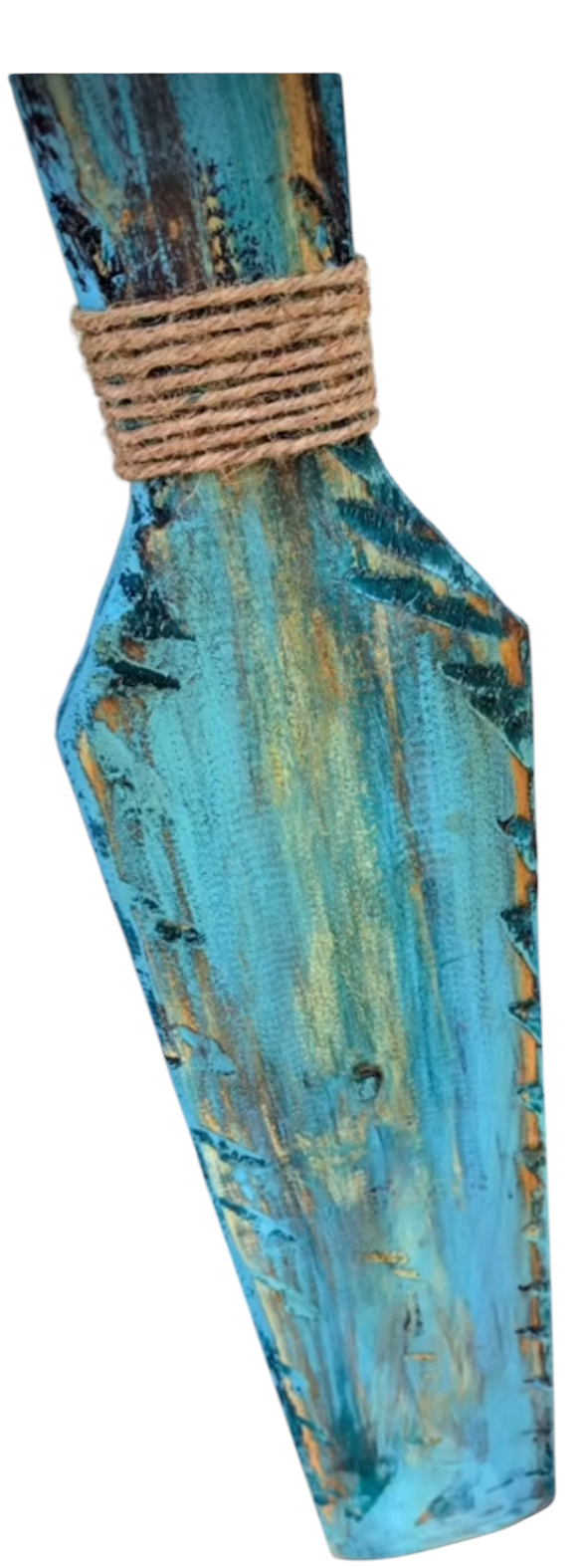 Rustic oars capture the essence of the seaside through its color scheme, materials, textures, and symbolic elements, creating a visual representation of the tranquility and natural beauty of the coast.